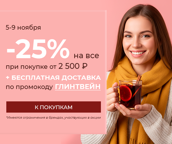 Скидка -25% от 2500 рублей на все по промокоду ГЛИНТВЕЙН