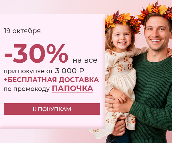 Скидка -30% от 3000 рублей на все + бесплатная доставка в подарок по промокоду ПАПОЧКА