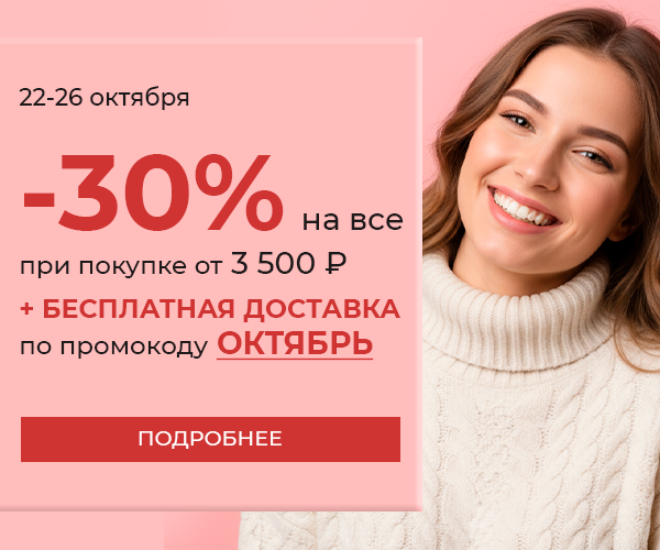 Щедрые дни! -30% на все от 3500 рублей + бесплатная доставка по промокоду ОКТЯБРЬ
