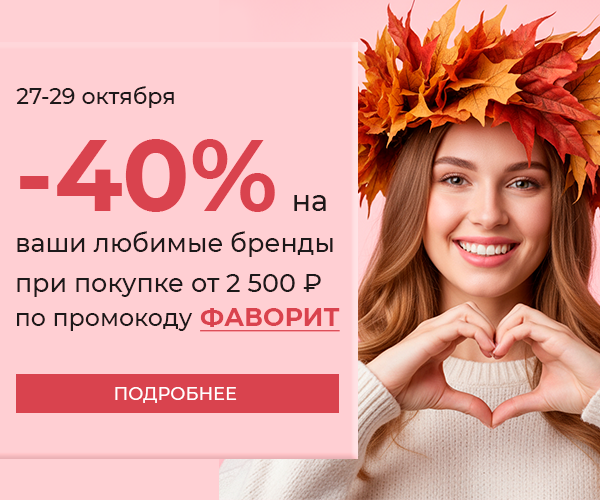 27-29 октября Скидка -40% на бренды-фавориты от 2500 рублей по промокоду ФАВОРИТ