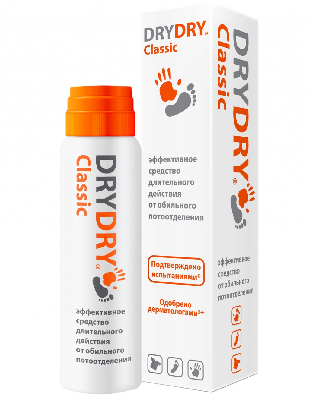 Противопоказания: перед применением DRYDRY Classic необходимо проконсультироваться с лечащим врачом лицам моложе 16 лет, беременным и кормящим женщинам, а также выраженным аллергикам.