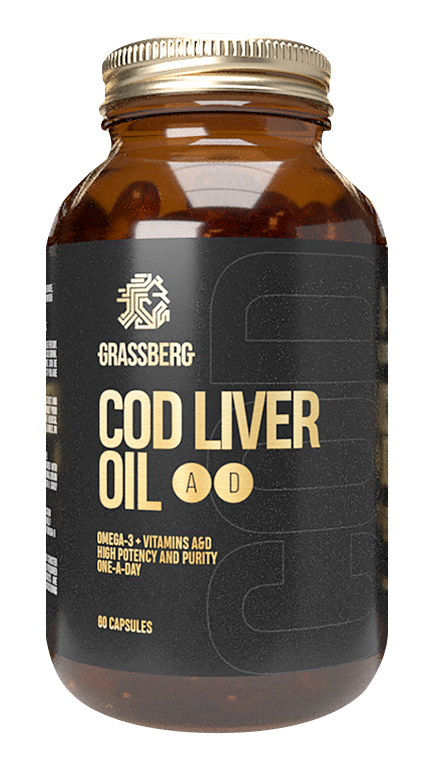 Cod Liver Oil GrassBerg - высококачественный жир из печени трески. Печень трески отличается высоким содержанием Омега-3 жирных кислот EPA и DHA, а также комплекс дополнен витаминами A, D и E.