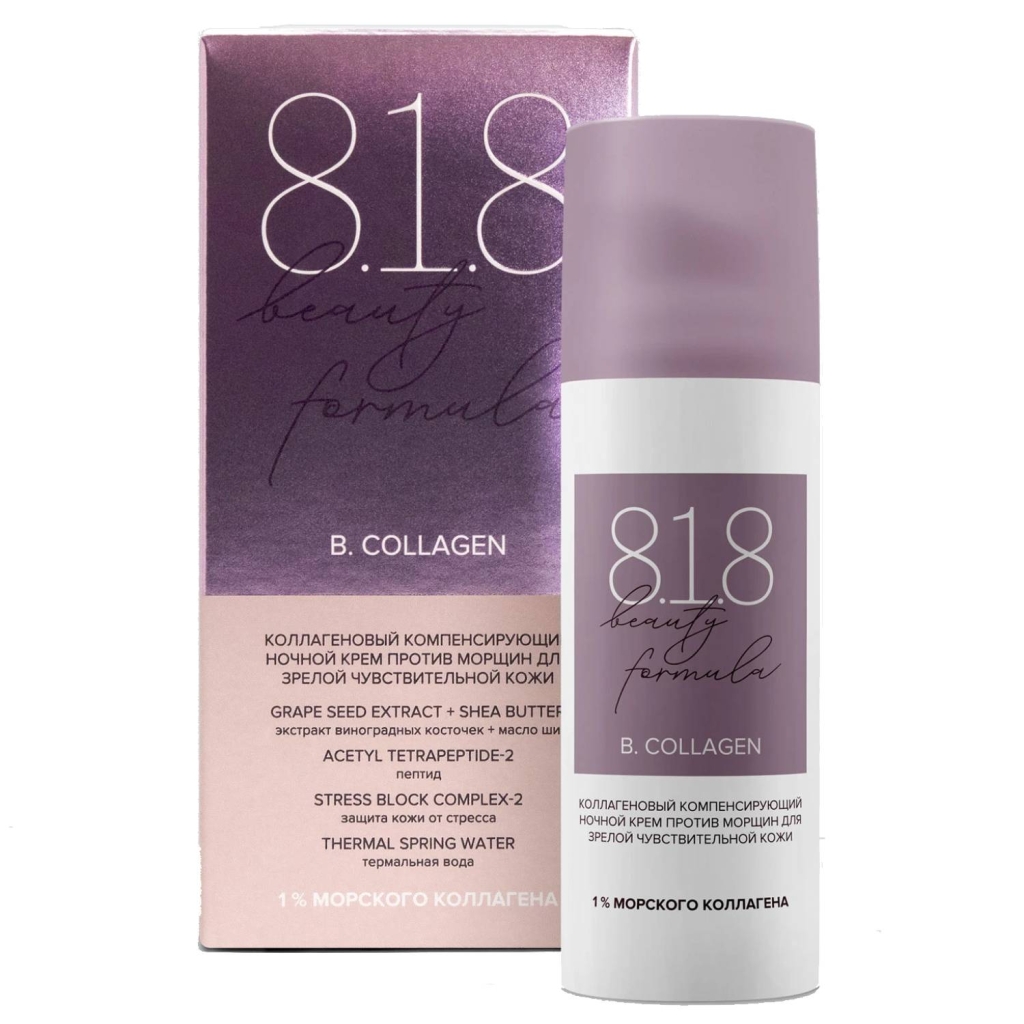 Коллагеновый ночной крем против морщин разработан для зрелой чувствительной кожи 45+ любого типа. Способствует активизации ресурсов кожи к омоложению, а также восстановлению собственного коллагена за счет стимулирующего действия на глубокие слои эпидермиса в вечернее и ночное время.