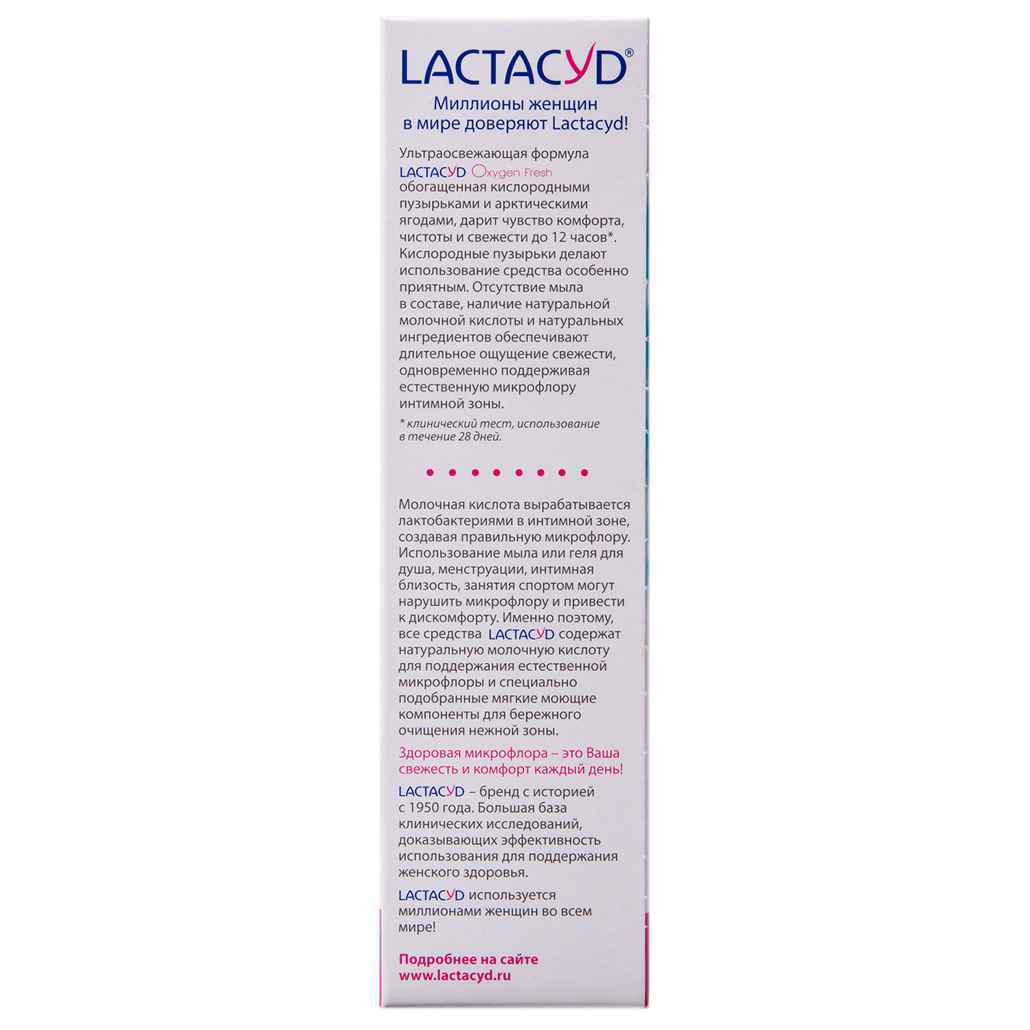 Ультраосвежающая формула LACTACYD OXYGEN FRESH, обогащенная кислородными пузырьками и арктическими ягодами, дарит чувство комфорта, чистоты и свежести до 12 часов. Кислородные пузырьки делают использование средства особенно приятным.