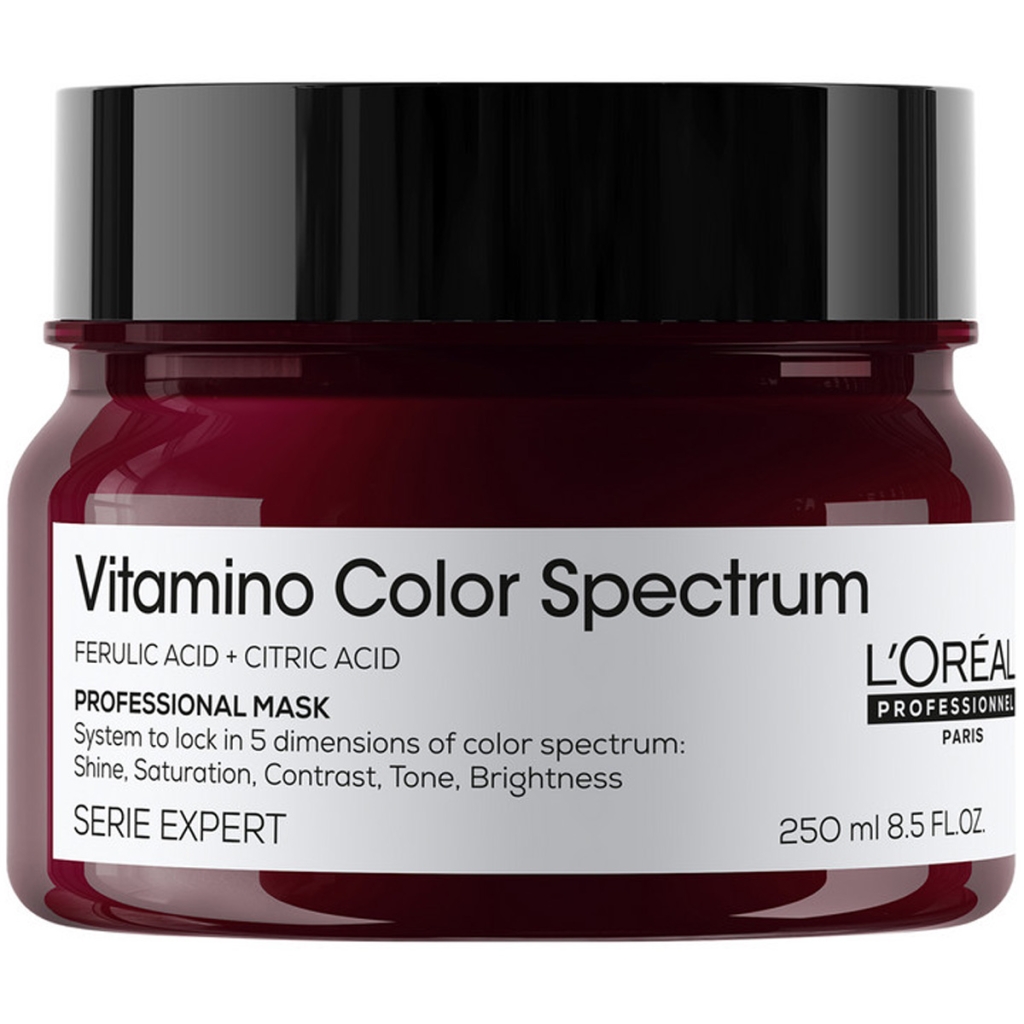 Vitamino Color Spectrum - Линия нейтрализующего ухода для окрашенных волос - инновационная гамма средств для всех типов окрашенных волос, разработанная для защиты всех параметров цвета (блеск, насыщенность, контраст, оттенок и яркость) и придания волосам сияния. Фиксирует пигменты в структуре волоса и придает зеркальный блеск, который выдерживает до 10 использований шампуня. Аромат гаммы - неповторимая фруктовая композиция, навеянная изысканными парфюмами.