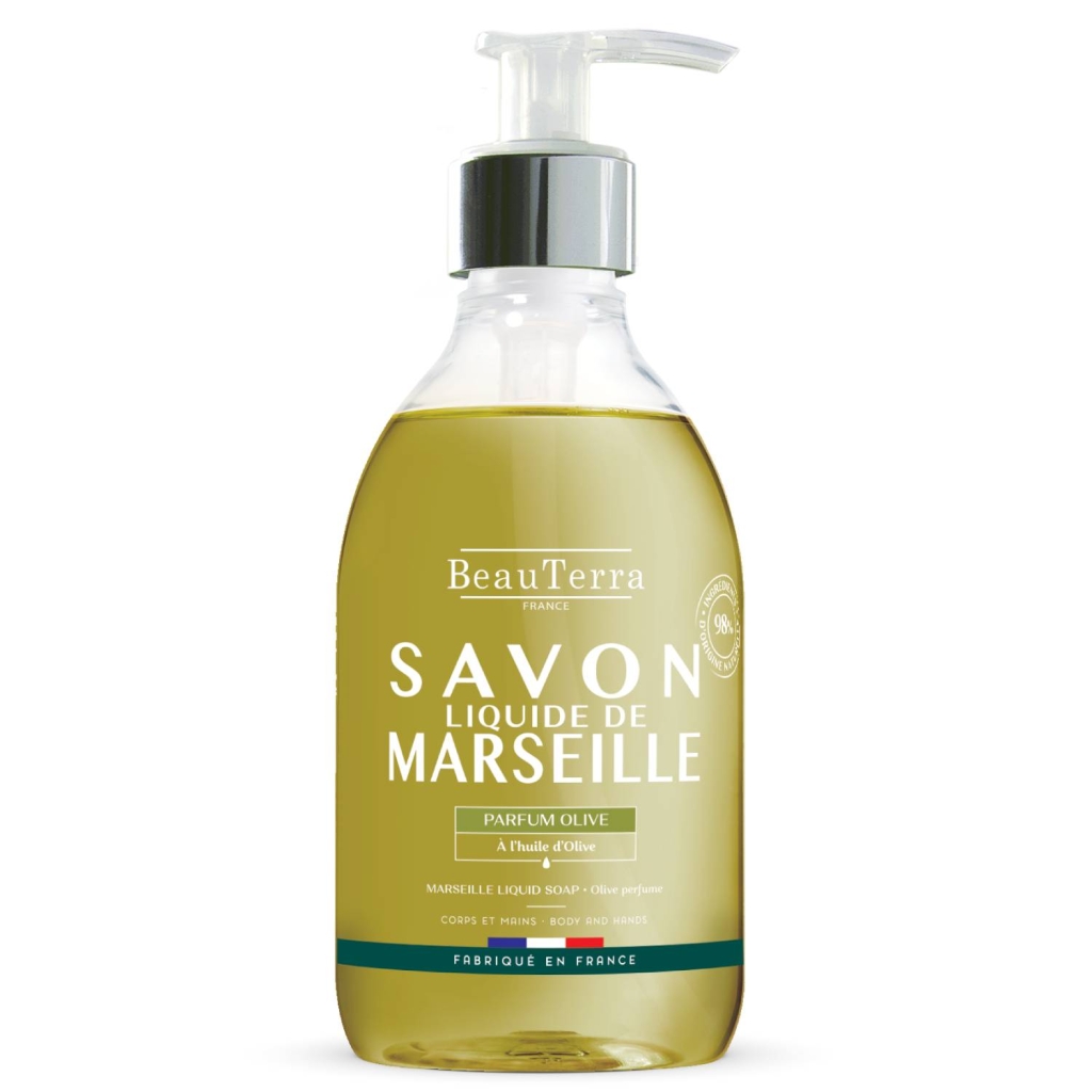 Жидкое марсельское мыло BeauTerra содержит 98% ингредиентов природного происхождения.