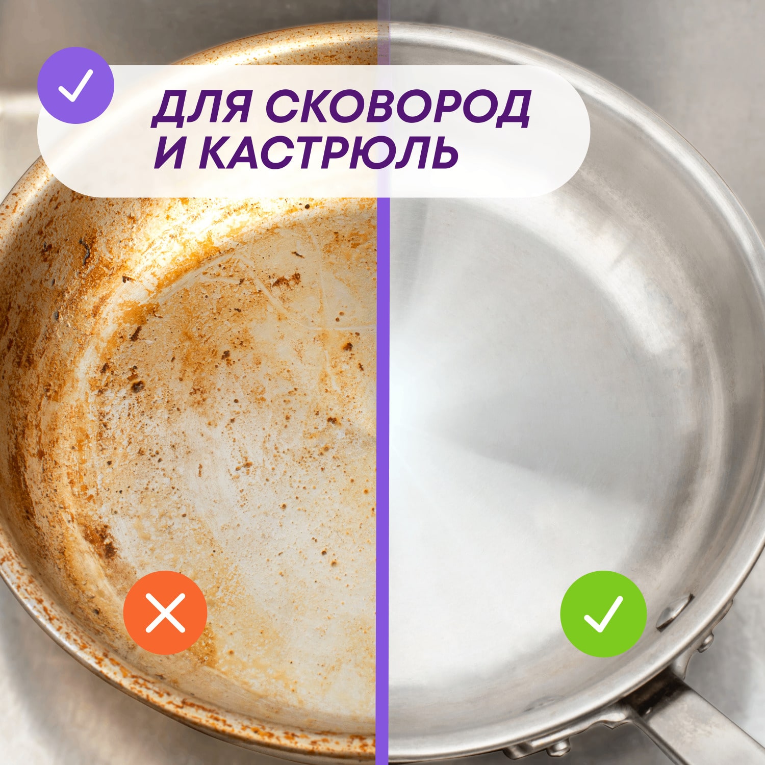 - эффективно и быстро удаляет пригоревшие остатки пищи, въевшийся жир и грязь