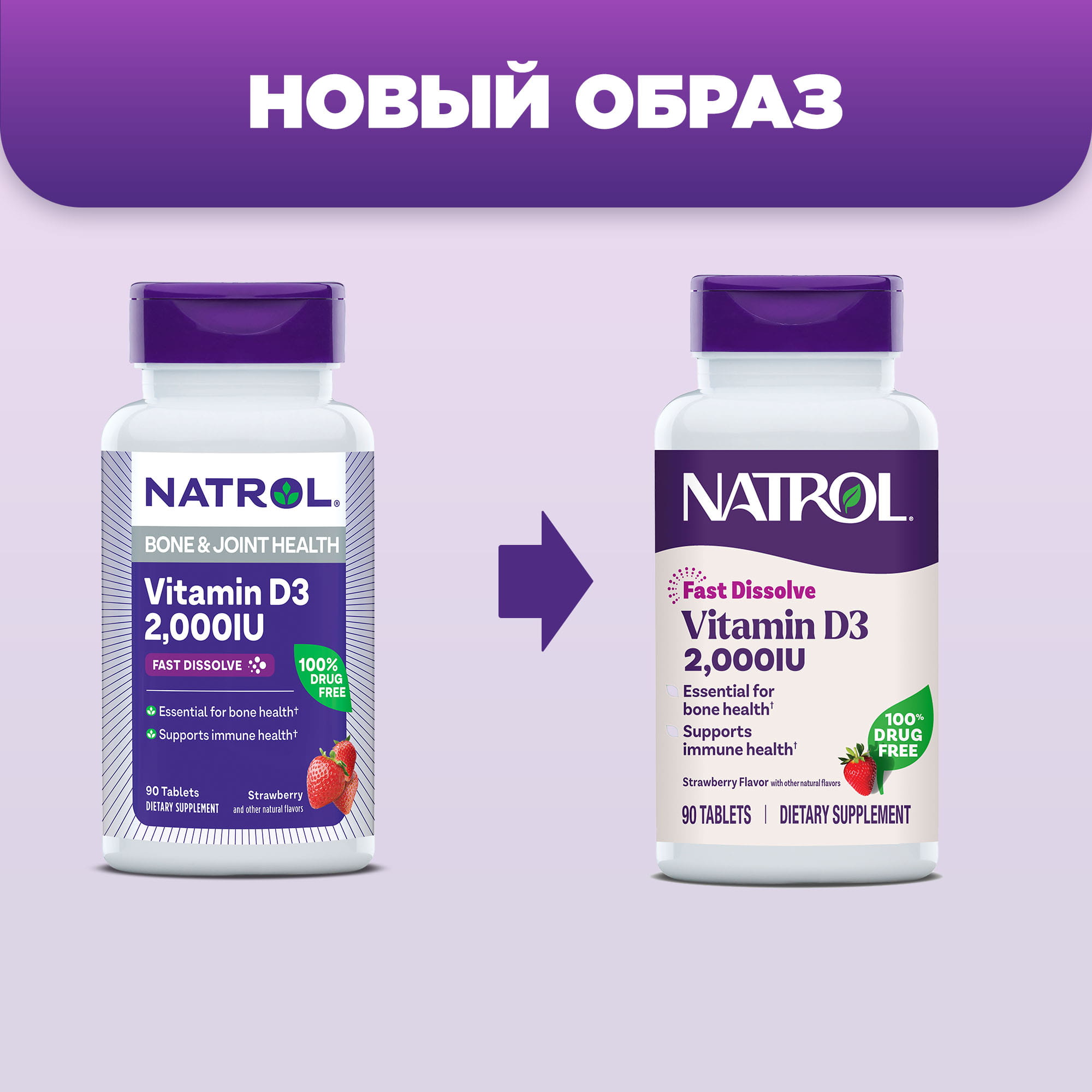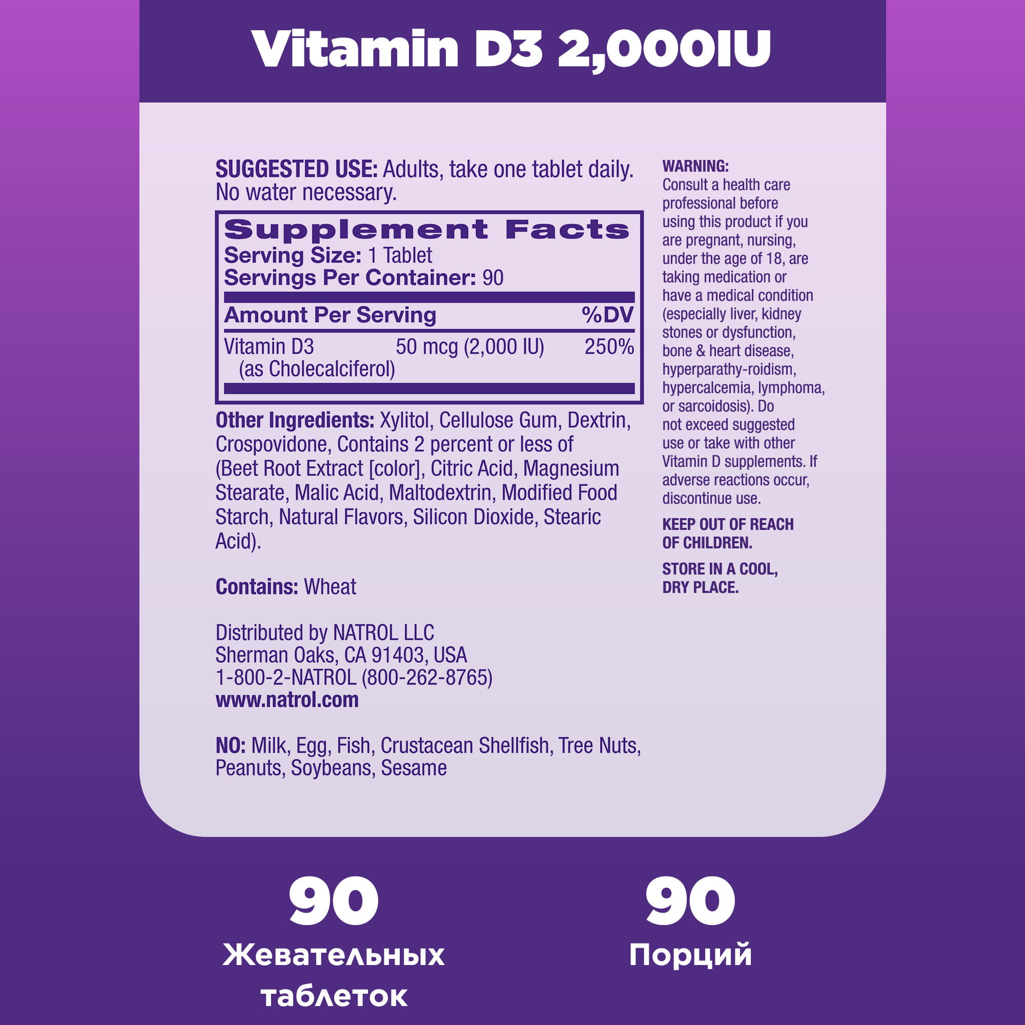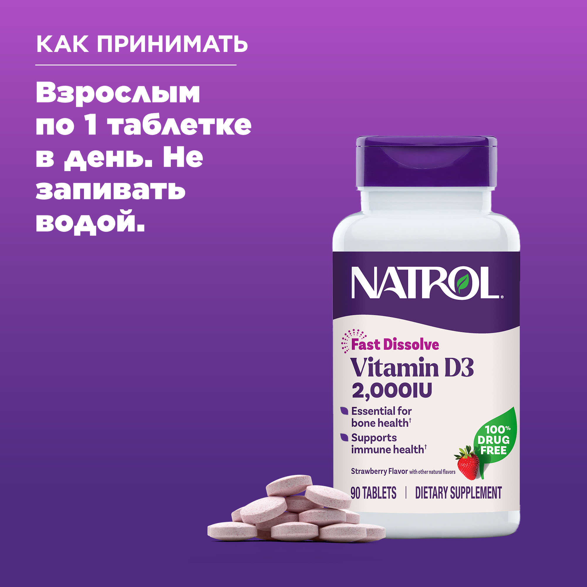 Natrol - Витамин D3 быстрорастворимый со вкусом клубники 2000, 90 таблеток