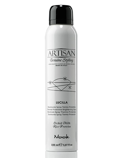 Nook Artisan Lucilla Thermal Protective Spray - Спрей с термозащитой - обеспечивающий защиту локонов от негативного воздействия высокой температуры и механических повреждений во время укладки утюжком, плойкой, феном. Быстро высыхает, не утяжеляет пряди и не оставляет жирной пленки, обеспечивает увлажнение и дополнительный объем.
