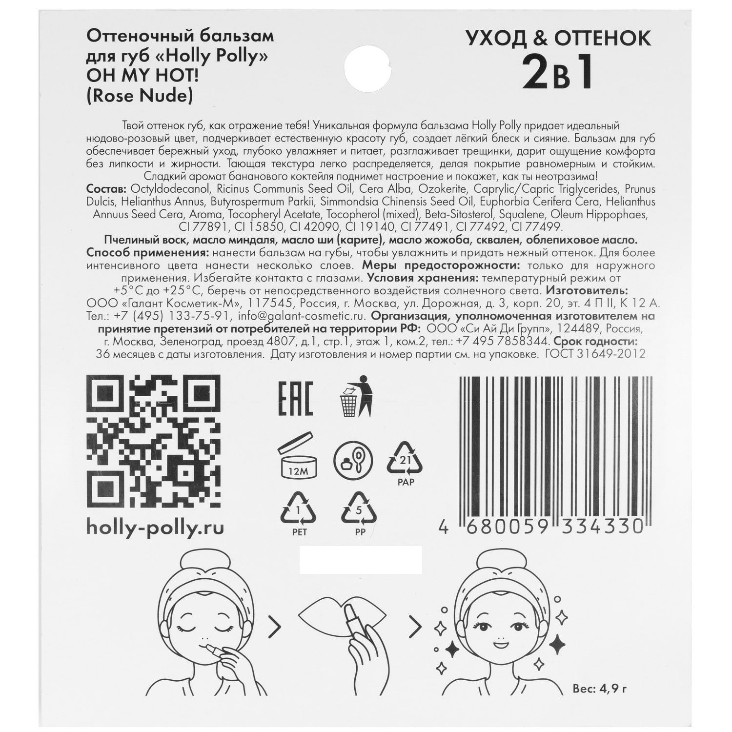 Holly Polly - Оттеночный бальзам для губ Oh My Hot! Rose Nude нюдово-розовый, 4,9 г