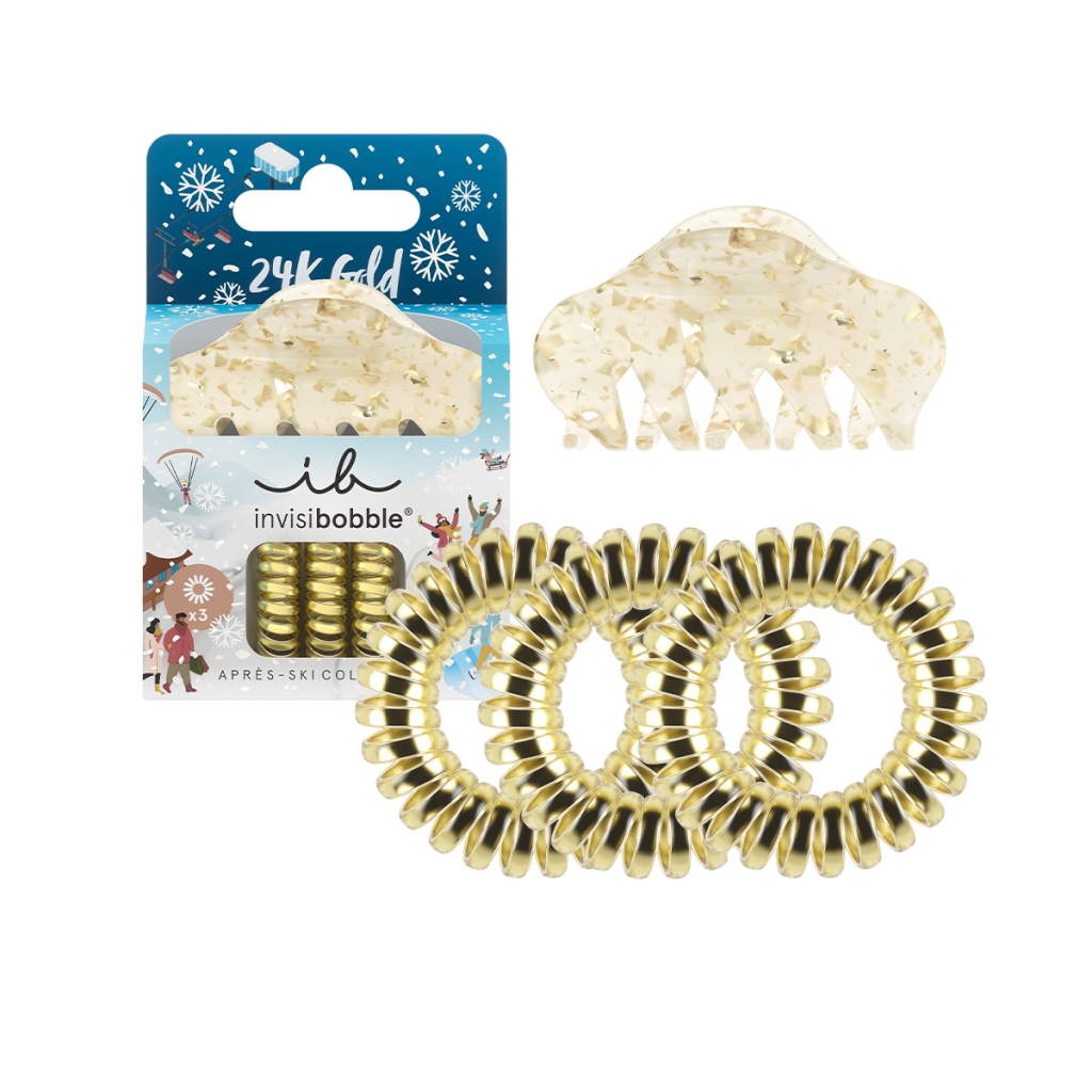 В подарочном наборе invisibobble Apres Ski 24K Gold вы найдете 4 эффектных аксессуара для праздничной прически: