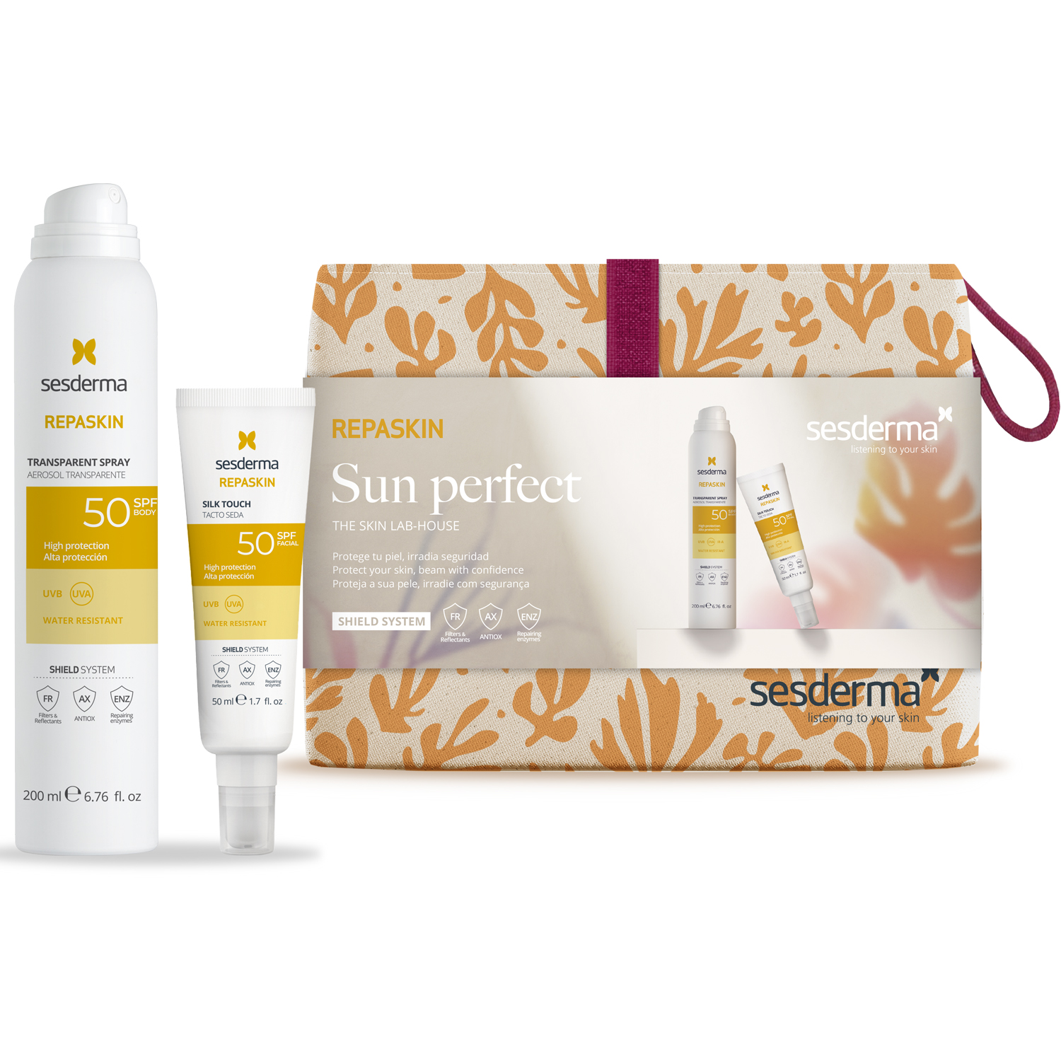Солнцезащитный набор SPF50: спрей для тела 200 мл + средство для лица 50 мл