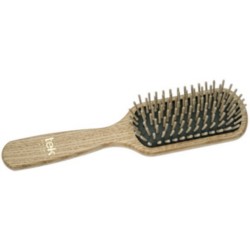 Щётка прямоугольная из натуральной древесины ясеня с деревянными зубцами Baseball, форма зубцов (узкие внизу, широкие вверху) позволяет расчёсывать как длинные, так и короткие, как гладкие, так и волнистые волосы.Закруглённые кончики массируют кожу головы. Каучуковая подушечка легко прогибается для лучшего результата при расчёсывании и укладке волос. Классическая щётка для длинных волос.