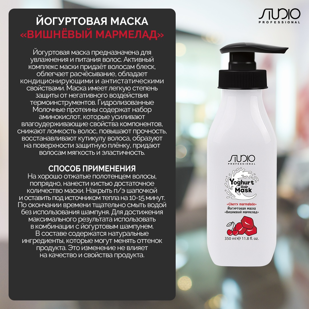 Kapous Professional Studio Professional - Йогуртовая маска для волос «Вишнёвый мармелад», 350 мл