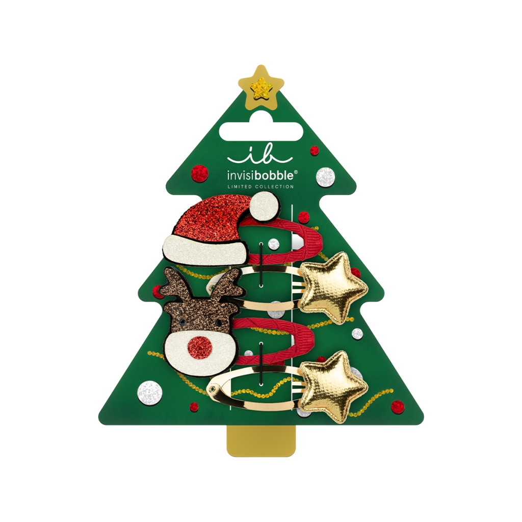 Заколка для волос invisibobble Clipstar Winter Wonderland - это 4 очаровательные заколки, украшенные рождественскими атрибутами — оленем, шапочкой и звездочками. По-детски непосредственные аксессуары подарят атмосферу праздника и поднимут настроение. Обеспечат надежную фиксацию прически в течение всего дня, не доставляя дискомфорт и не повреждая волосы. Для любых образов, для всех типов волос.