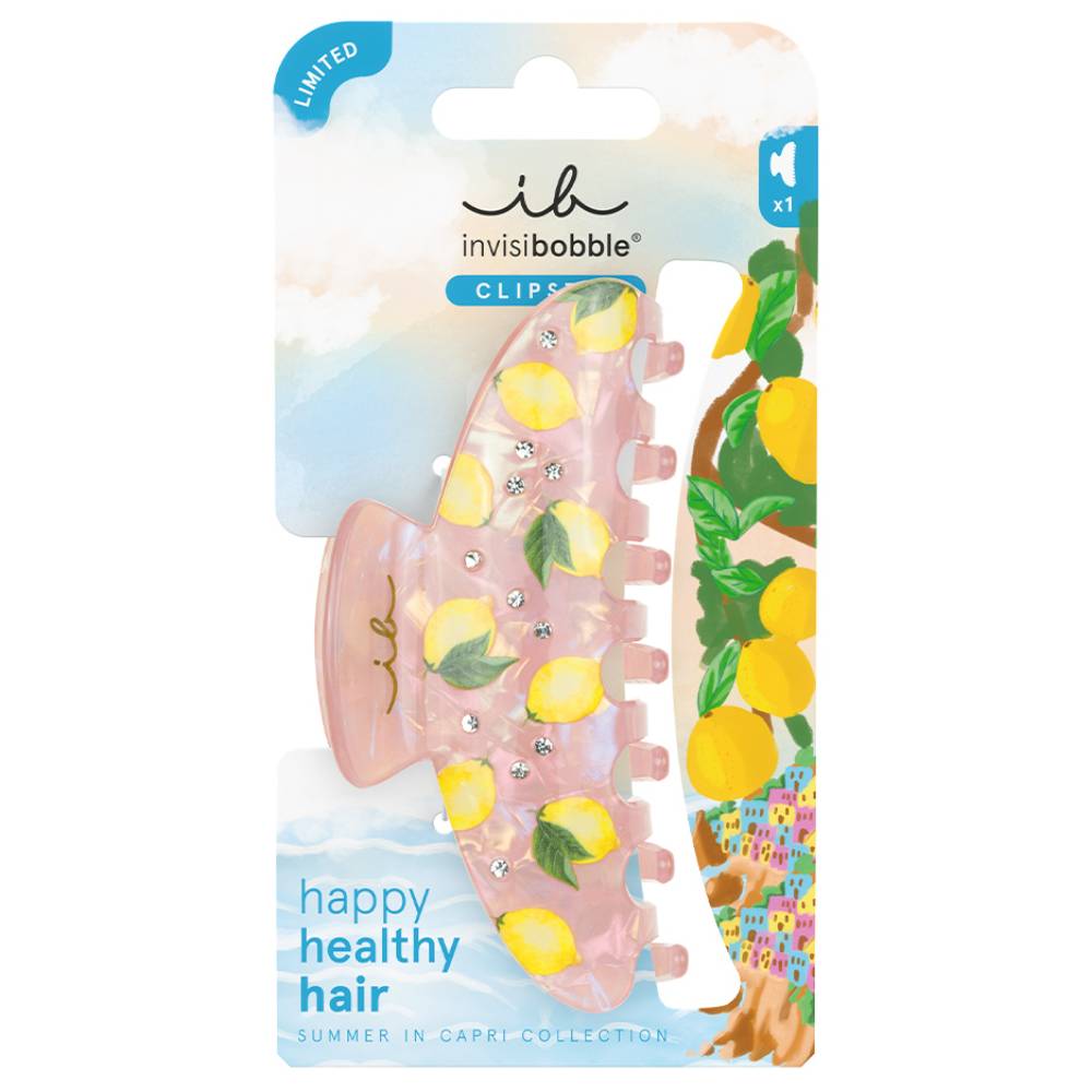 Invisibobble Clipstar Summer in Capri Charme - трендовый аксессуар с лимонным принтом. Неслучайно именно этот фрукт украшает заколку: сицилийский лимон - символ итальянской кухни и культуры. Крабик позволяет завершить образ всего за несколько секунд: пара движений - и прическа готова! Укладка с небрежно выпущенными прядями у лица, элегантный завиток или романтичная «мальвинка» - заколка надежно при этом бережно зафиксирует волосы в любой прическе в течение всего дня. Подходит для всех типов волос и любых образов.